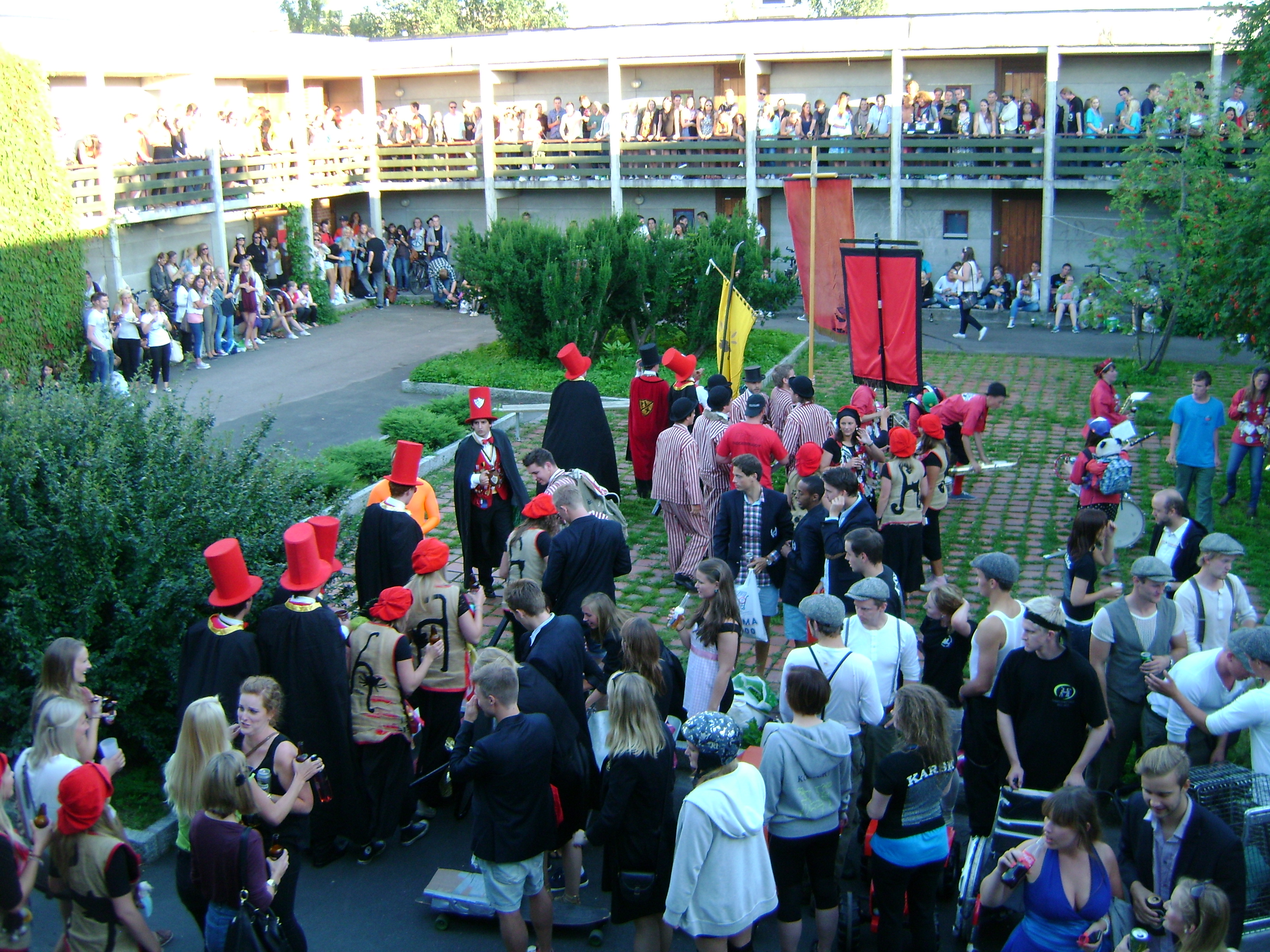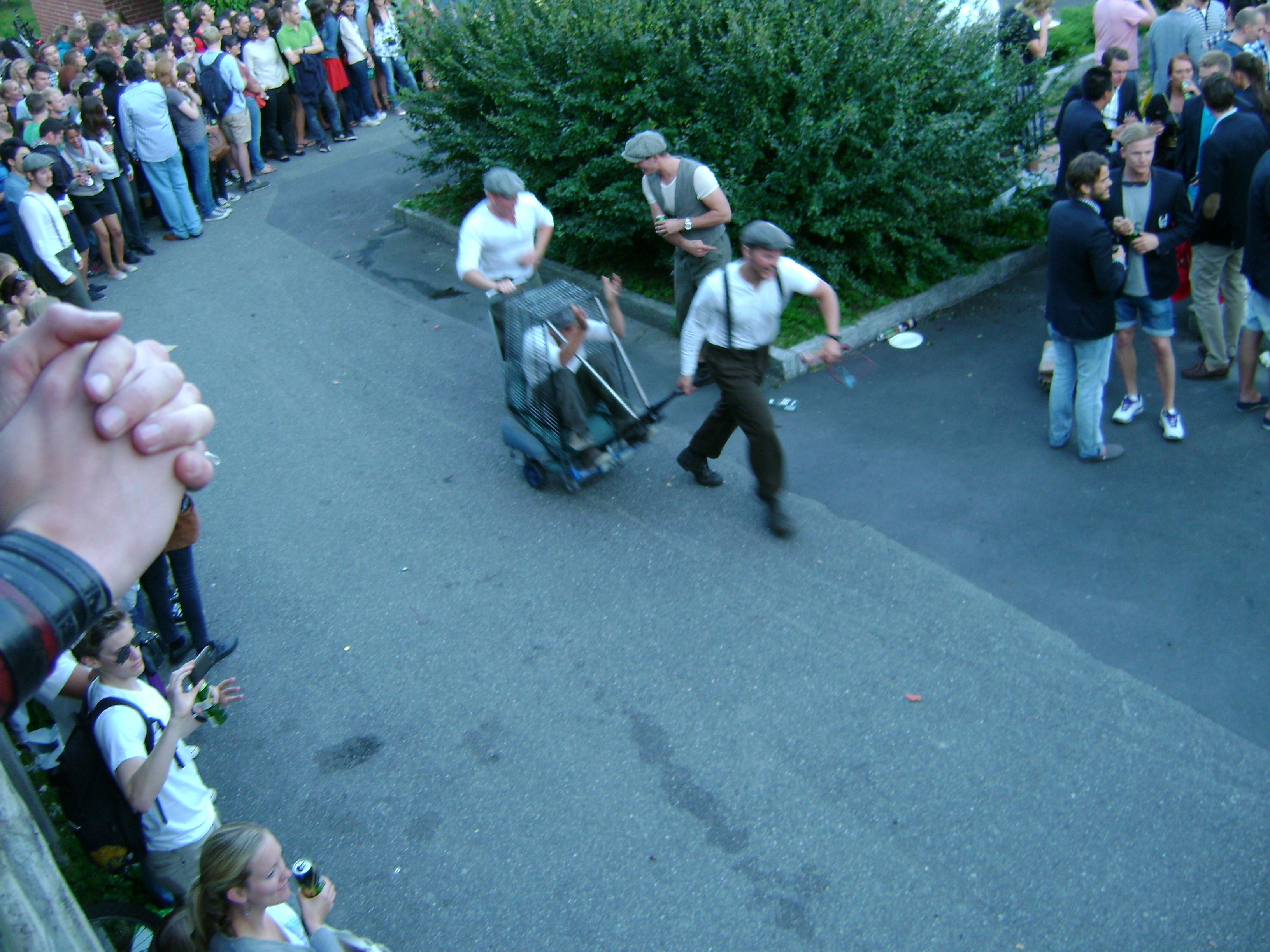 The various frats and srats have a push-cart race tradition at this bbq, where each group brings a homemade go-cart (which usually reflects the group through its choice of colors and decorations) and the groups compete with each other to make a series of laps around the courtyard of Kringla (my building) until a winner is decided. I am not sure what the reward is – I assume prestige – but it was a hilarious spectacle and I have a few photos and video to represent the hilarious evening we all had watching. I am happy to say that there also did not seem to be any serious injuries except for some scraped knees and bruises. Great show š