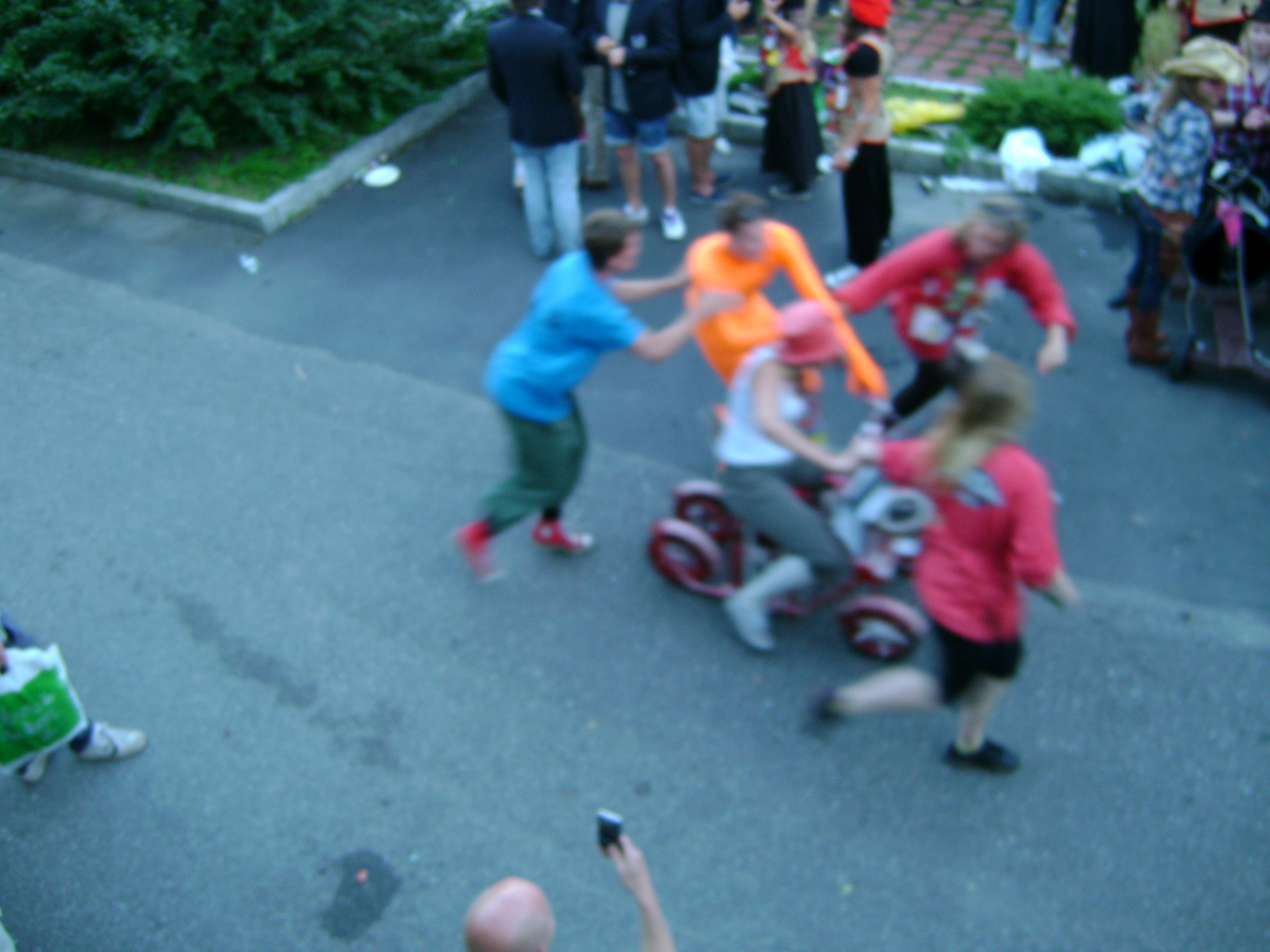 The group in orange (I think) is the group that is in charge of organizing the UKA i Ć s festival which is taking place this year for the month of October. This is a month long celebration of music from Norway and abroad in Europe. Should be a great time. The UKA people certainly had great costumes, and one of the more impressive go carts!
