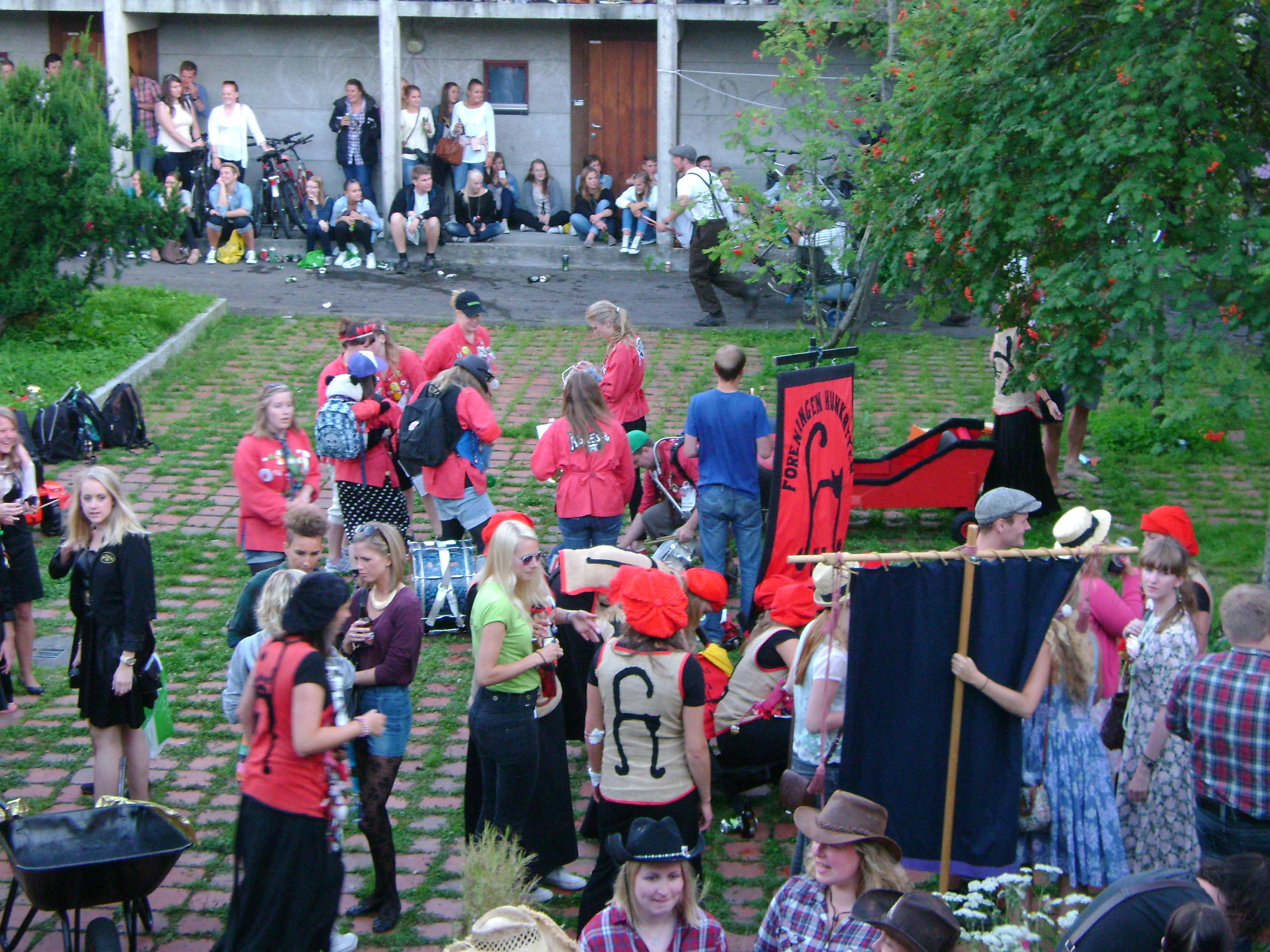 One event that took place was the “parade” of all the fraternities and sororities at UMB. These frats and srats are less similar to the greek scene that I was a part of in college, and more of just a group of different clubs, choirs, and singing groups that have existed on UMB’s campus for a variety of reasons. The oldest frat is the “tom cats” who have a usual uniform of red and white vertical striped suits. Their “house” is the top floor of one of the dorm buildings here in Pentagon, which you can easily identify by the red and white striped curtains, as well as the recently carved phallus that was carved into a tree next to the building (I do not have a photo – my apologies…)
